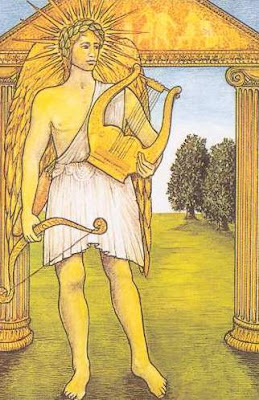 Apollo was also the god of archery. This adds another dimension to the card. When we think of all that positive, free, creative energy actually being directed at a target we begin to get a sense of what is possible in life. If we are able to both express our true self and find a destination for that energy, then surely great things can be achieved.